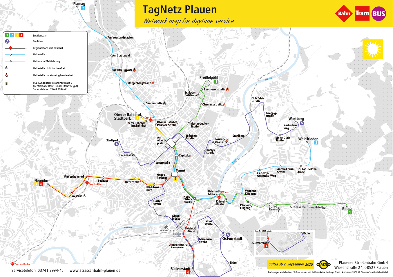 Beschreibung: Liniennetz Tagesverkehr Plauen