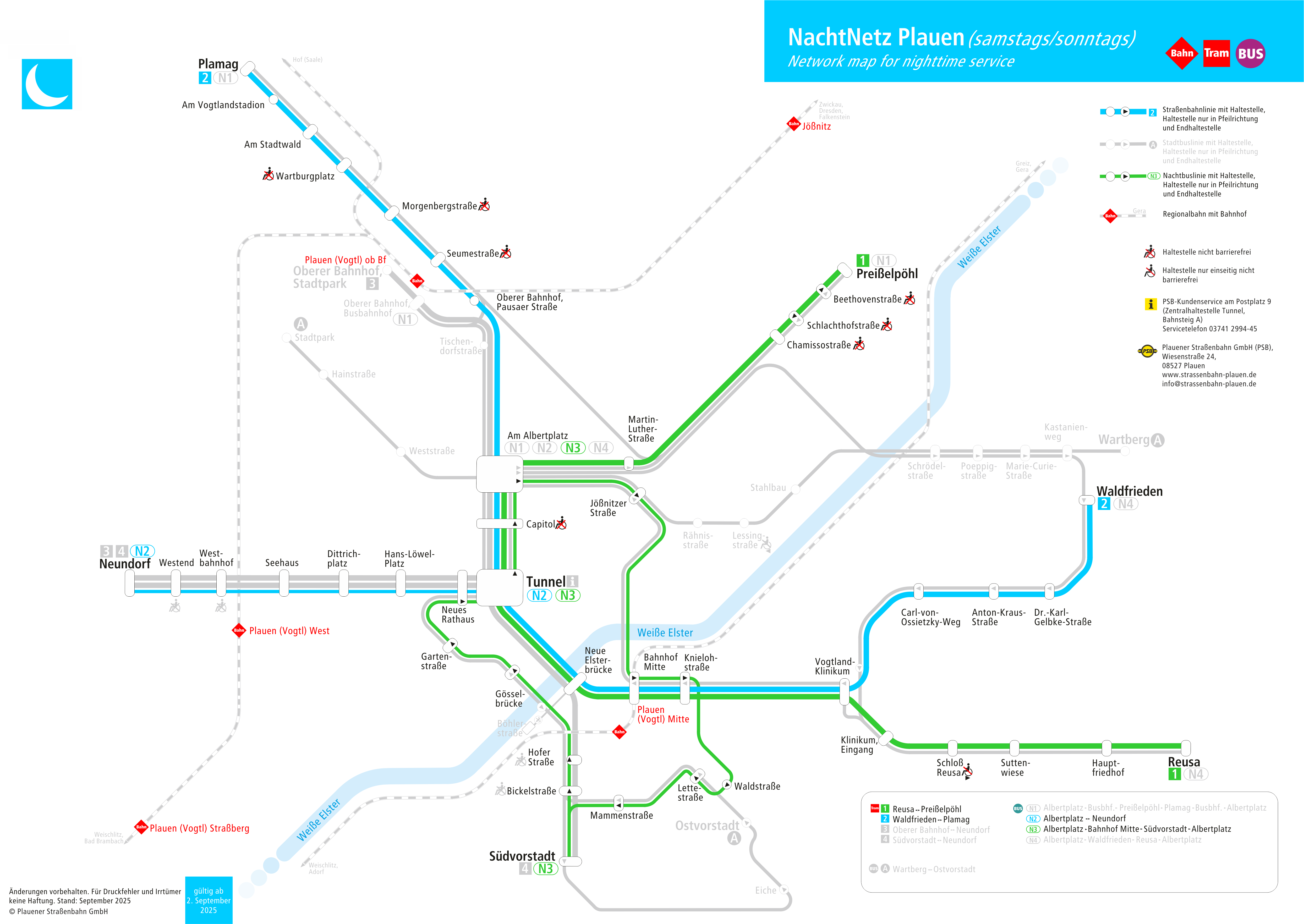 Beschreibung: Liniennetz Nachtverkehr Plauen Samstag und Sonntag